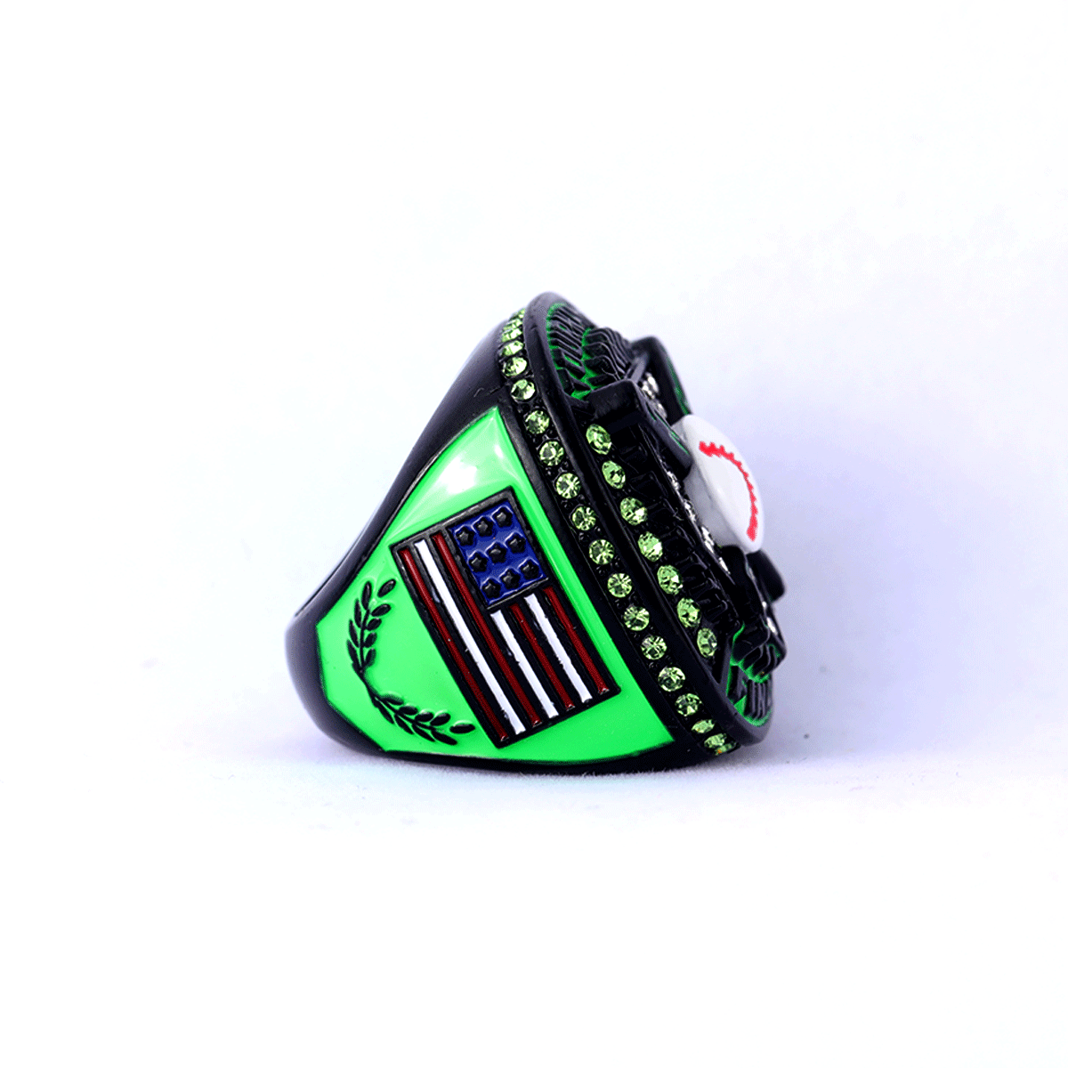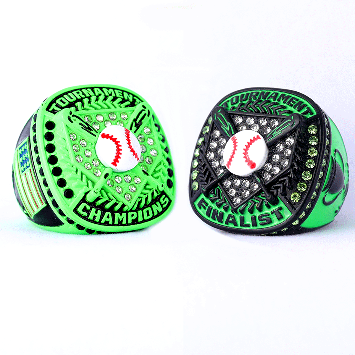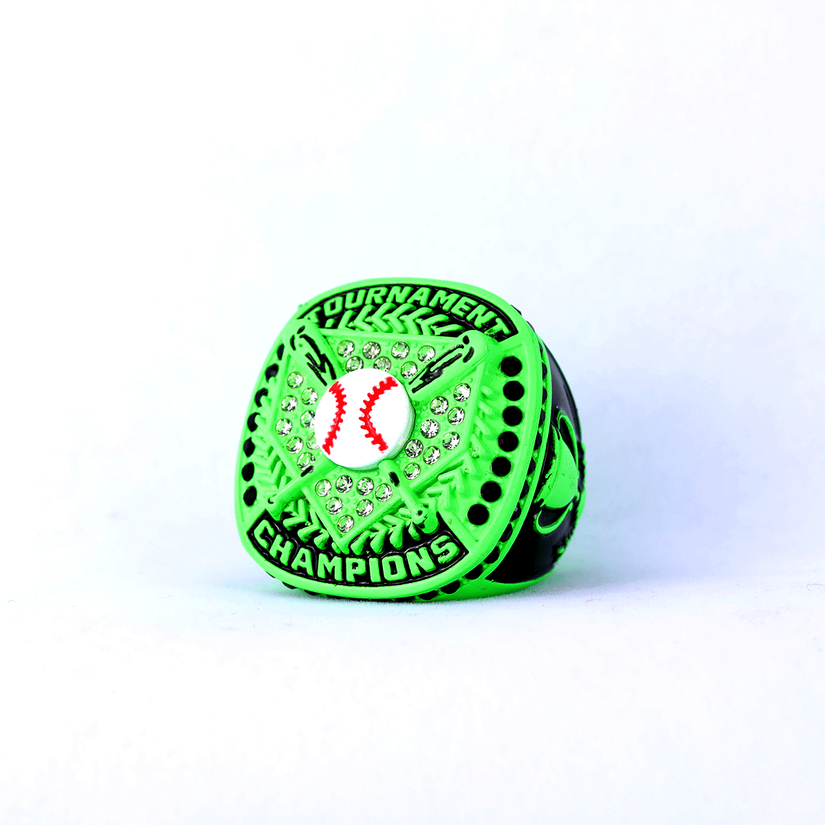 Black neon green youth baseball tournament championship awards rings finger size 9