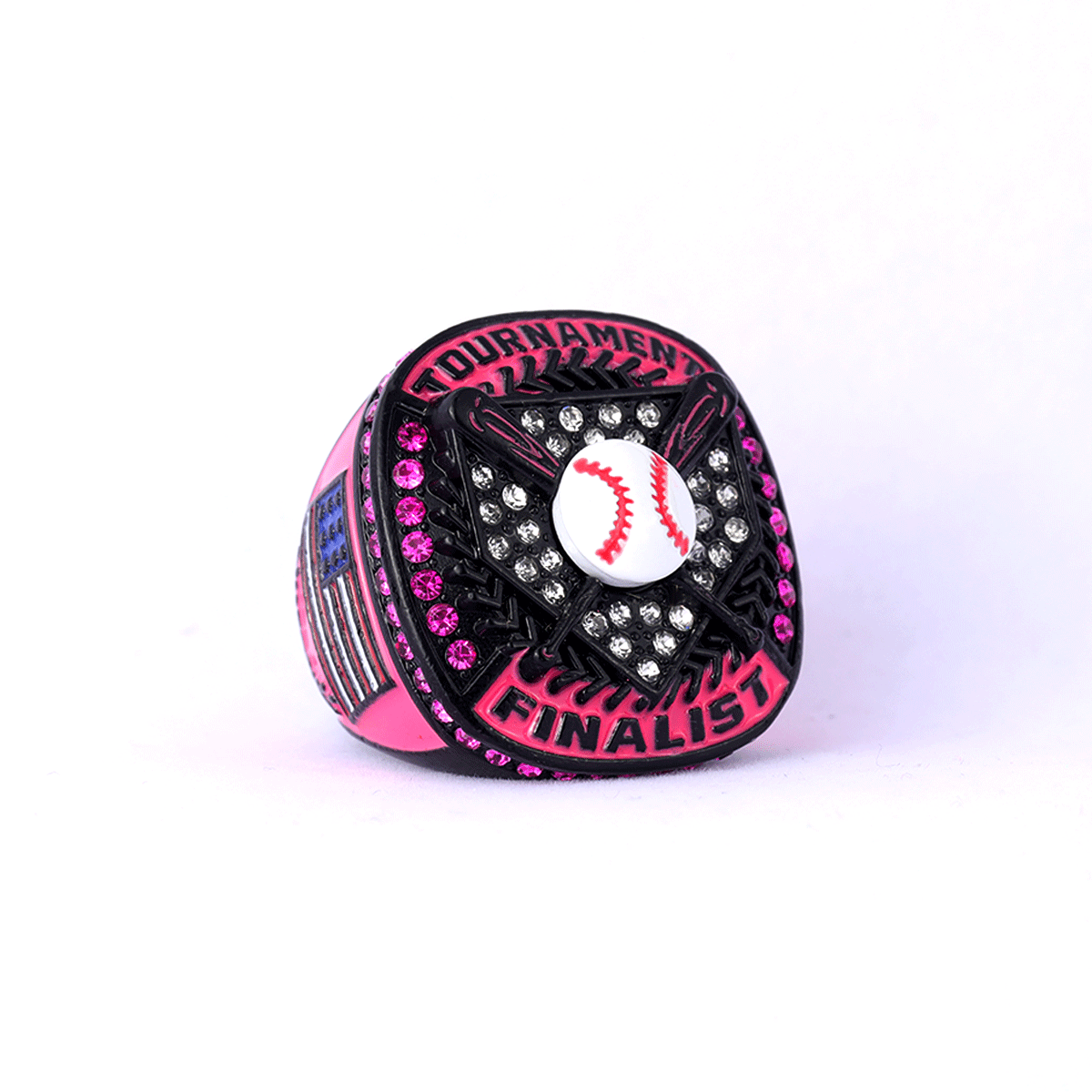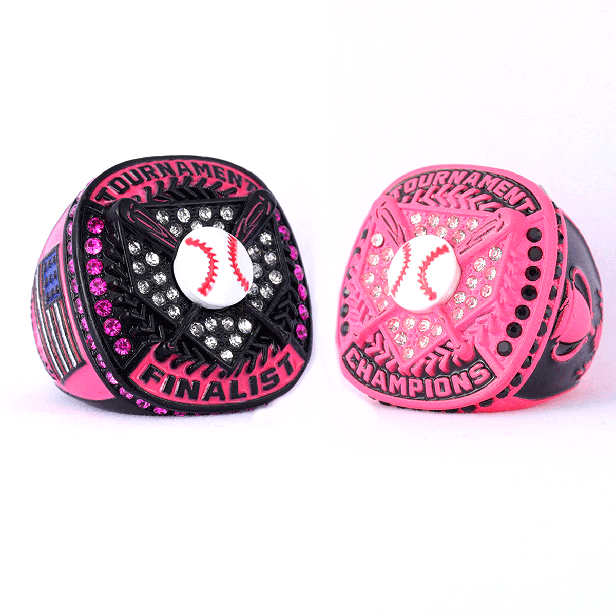 Black neon pink series youth BASEBALL tournament championship ring finger size 9 boy baseball awards